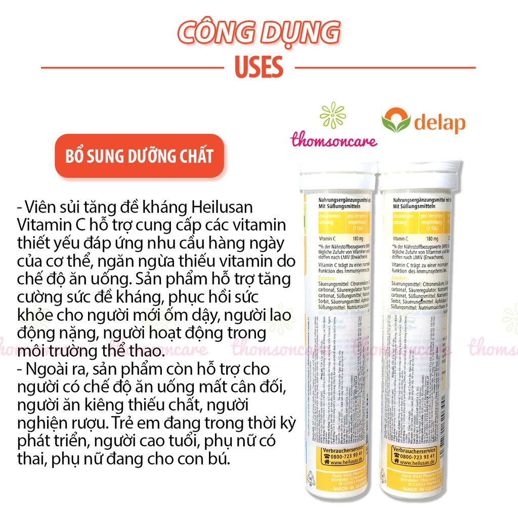 C sủi bổ sung vitamin C Heilusan – nhập khẩu từ Đức, tăng sức đề kháng, miễn dịch, tuýp 20 viên.