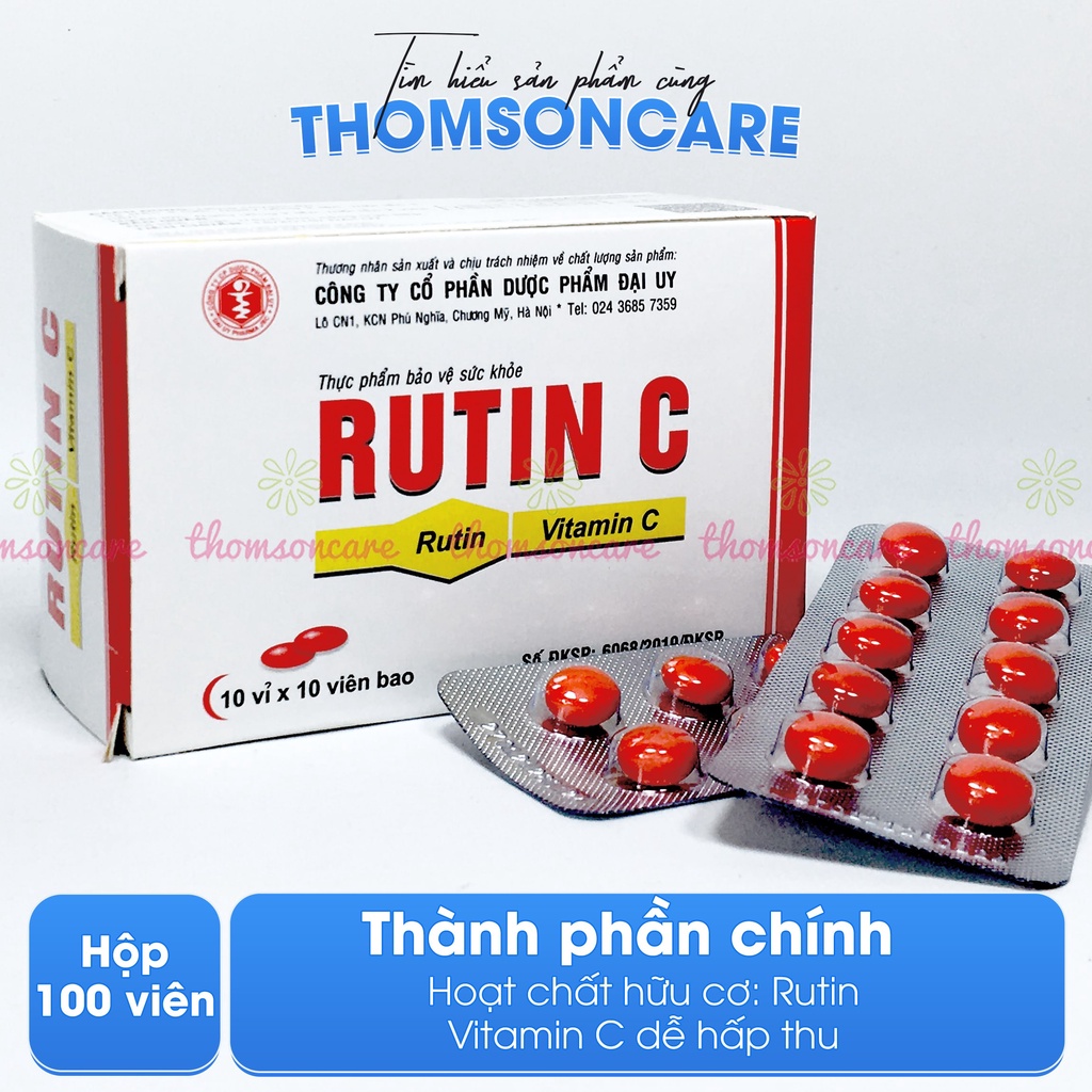 Rutin C Đại Uy – bổ sung vitamin C, giúp tăng cường sức đề kháng, phòng ngừa nhiệt miệng, táo bón – Hộp 100 viên.