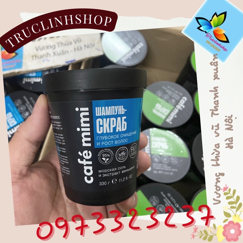– Dầu gội tẩy da chết da thường Cafe Mimi Shampoo Deep cleansing & Hair growth màu xanh dương dành cho tóc thường, tóc yếu rụng 330 ml
