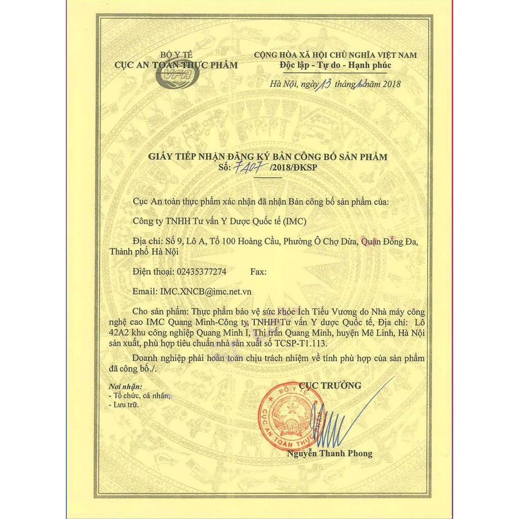 Nhà sản xuất: Công ty TNHH Tư vấn Y dược Quốc tế (IMC)