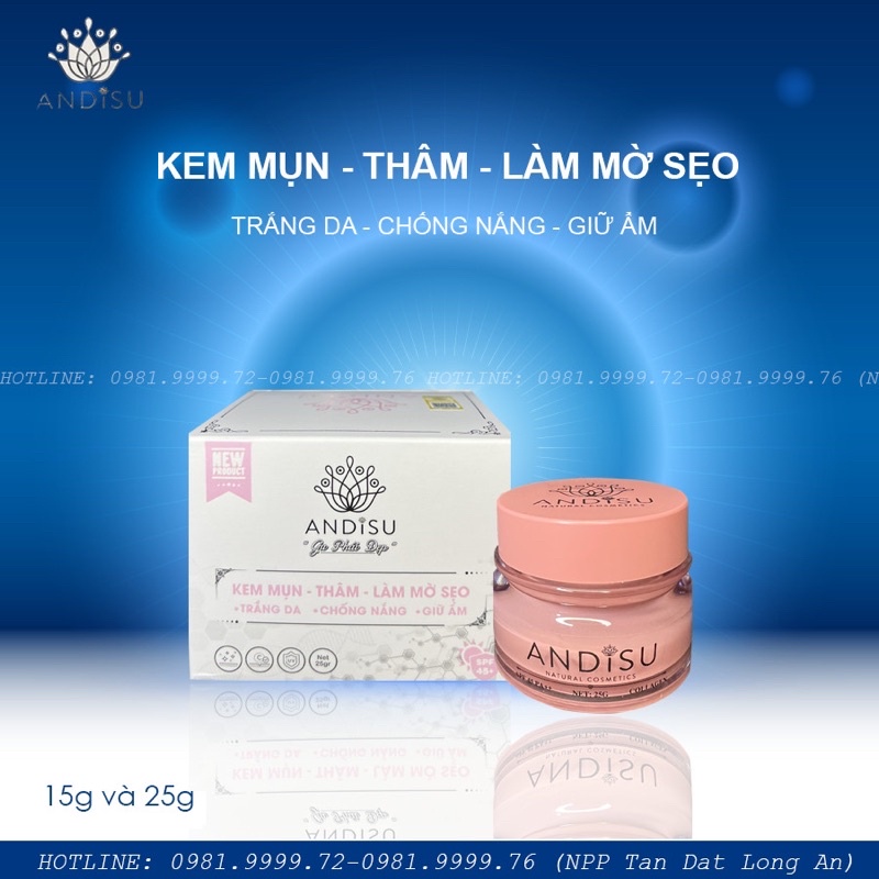 Kem mụn thâm làm mờ sẹo & trắng da chống nắng giữ ẩm ANDISU 25 và 15g – Mia Beauty- ShopRuaMui