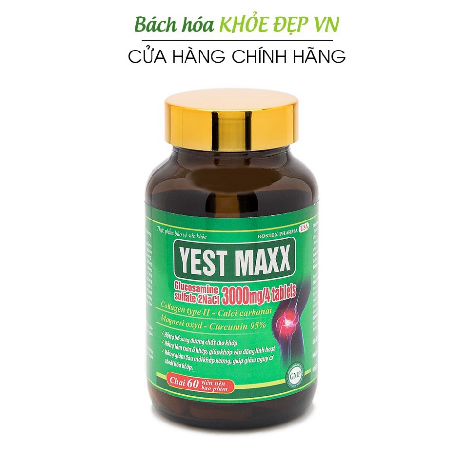 – YEST MAXX Glucosamine Giúp làm trơn ổ khớp, giúp cơ thể vận động linh hoạt.