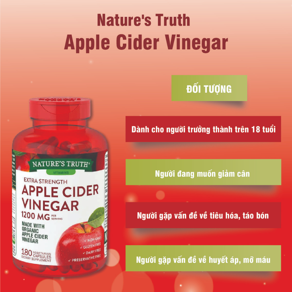 – Viên uống giấm táo Nature’s Truth Apple Cider Vinegar Kirkland Signature hỗ trợ kiểm soát và ngăn sự hình thành các tế bào mỡ tích tụ dưới da