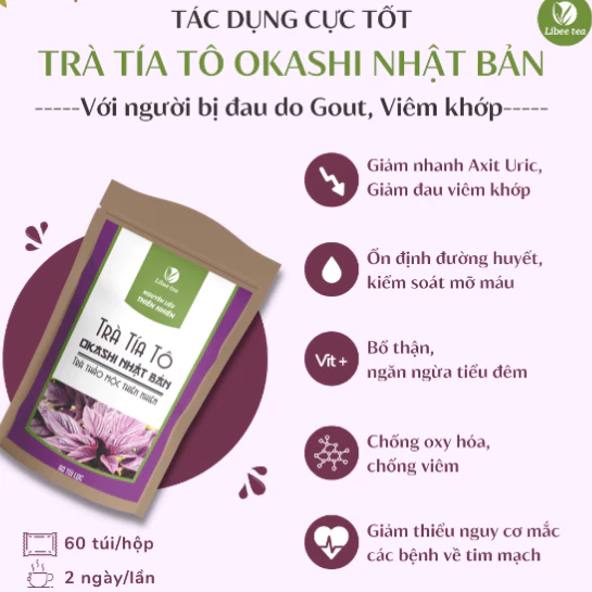 Trà Tía Tô OKASHI GOLD Nhật Bản ( Hỗ trợ bệnh Gút, Giảm chỉ số acid uric, Giảm đau xương khớp) – Bịch 60 túi lọc